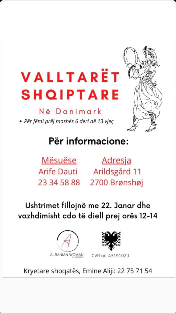 Kom og deltag i vores albanske undervisningsprogram, hvor dine børn vil danne venskaber, udvikle motoriske færdigheder og samtidig dykke ned i Albanien’s rige kulturarv. Vi glæder os til at byde jer velkommen til en verden af dans, musik og sjov!