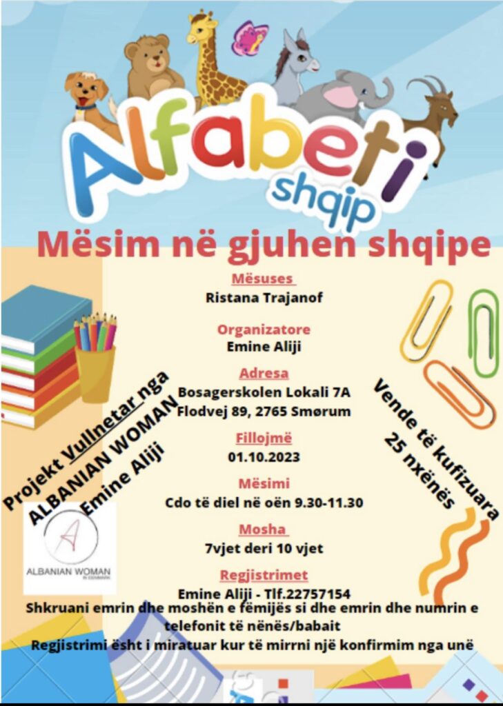 Vi er passionerede om at fremme kulturel mangfoldighed og sprogindlæring, og vores undervisningsprogram er skræddersyet til at introducere børne til det fascinerende albanske sprog og dets rige kultur. Vores erfarne undervisere skaber en sjov og interaktiv læringsoplevelse, der ikke kun fokuserer på sproglige færdigheder, men også på at styrke forståelsen af Albanien og dets traditioner.